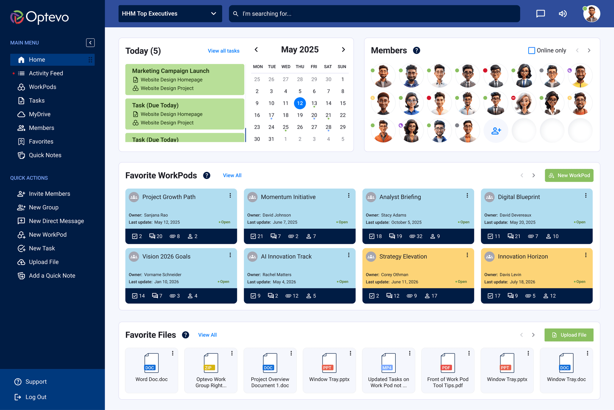 This created a clear opportunity to turn Optevo into an AI-first work platform where knowledge is automatically indexed, answers are surfaced in the flow of work, and routine coordination is handled by an intelligent assistant.